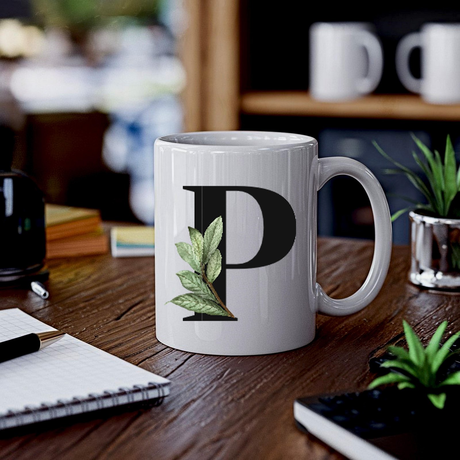 🌿 Botanik P Harfli Kupa Bardak – Doğanın Zarafetiyle Kişisel Dokunuş